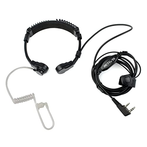 Retevis Walkie Talkie Throat Mic 2-poligt headset infällbar hals mikrofon öronsnäcka kompatibel med 2-vägs radio RT24 RT27 RT622 Baofeng UV5R Kenwood Covert akustisk tub öronsnäcka för jakt (1 st)
