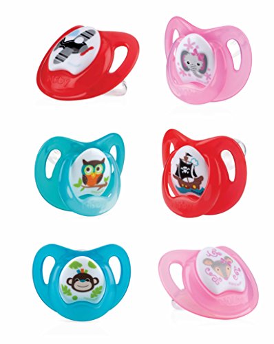 Tommee Tippee nattliga nappar 6-18 m, 6-pack, lyser i mörkret, varierade färger och mönster, symmetrisk ortodontisk napp, BPA-fri silikondinapp