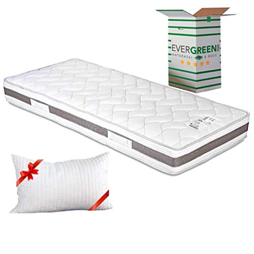 EVERGREENWEB – ortopedisk madrass med vattenskum 90 x 200 cm, höjd 20 cm + 1 visuell skumkudde gratis av minnesskumflingor, andas, allergivänliga, ergonomiska, 100 % tillverkad i Italien | mode