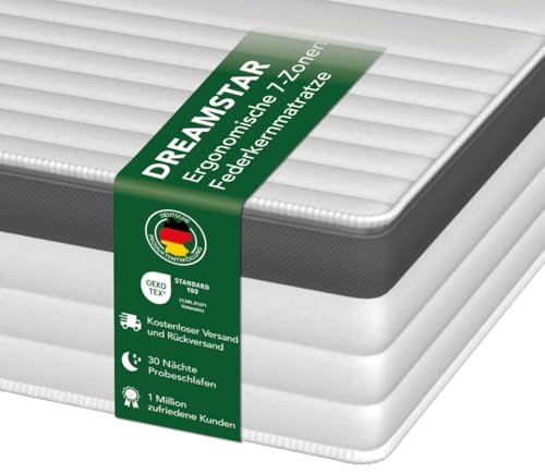 DREAMSTAR Ortopedisk madrass med 7 zoner, 21 cm hög, Oeko-Tex-certifierad, hårdhetsgrad 4 (H4), 140 x 200 cm