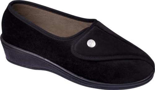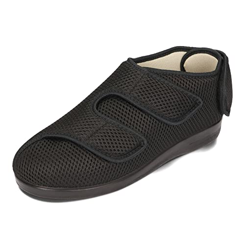 Ortho + Rest diabetikerskor för kvinnor med justerbar stängning, ortopediska promenadskor, ödem skor för svullna fötter, svart, 41 EU