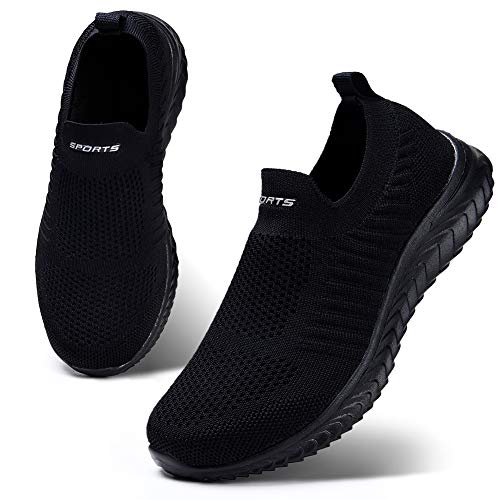 HKR Dam Slip on Skor Ortopediska Promenadskor Andningsaktiva Mesh Tränare Casual Promenadskor Helt Svart 38 EU
