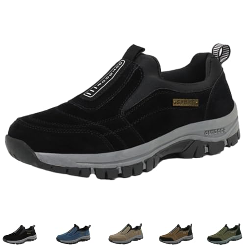 JACKSHIBO händer fria slip-in herrskor slip-on sneakers fotbågstöd ortopediska skor minnesskum promenadskor med bred tålåda noll klack sulor, svart, 43 EU bred