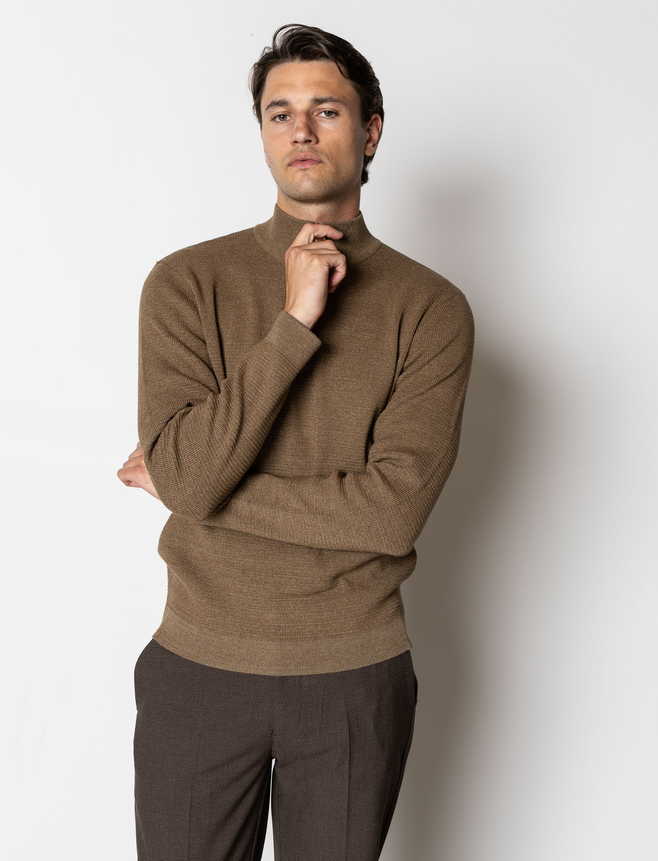 Clean Cut Copenhagen Oscar Half-Zip Knit - Brown - XXXL