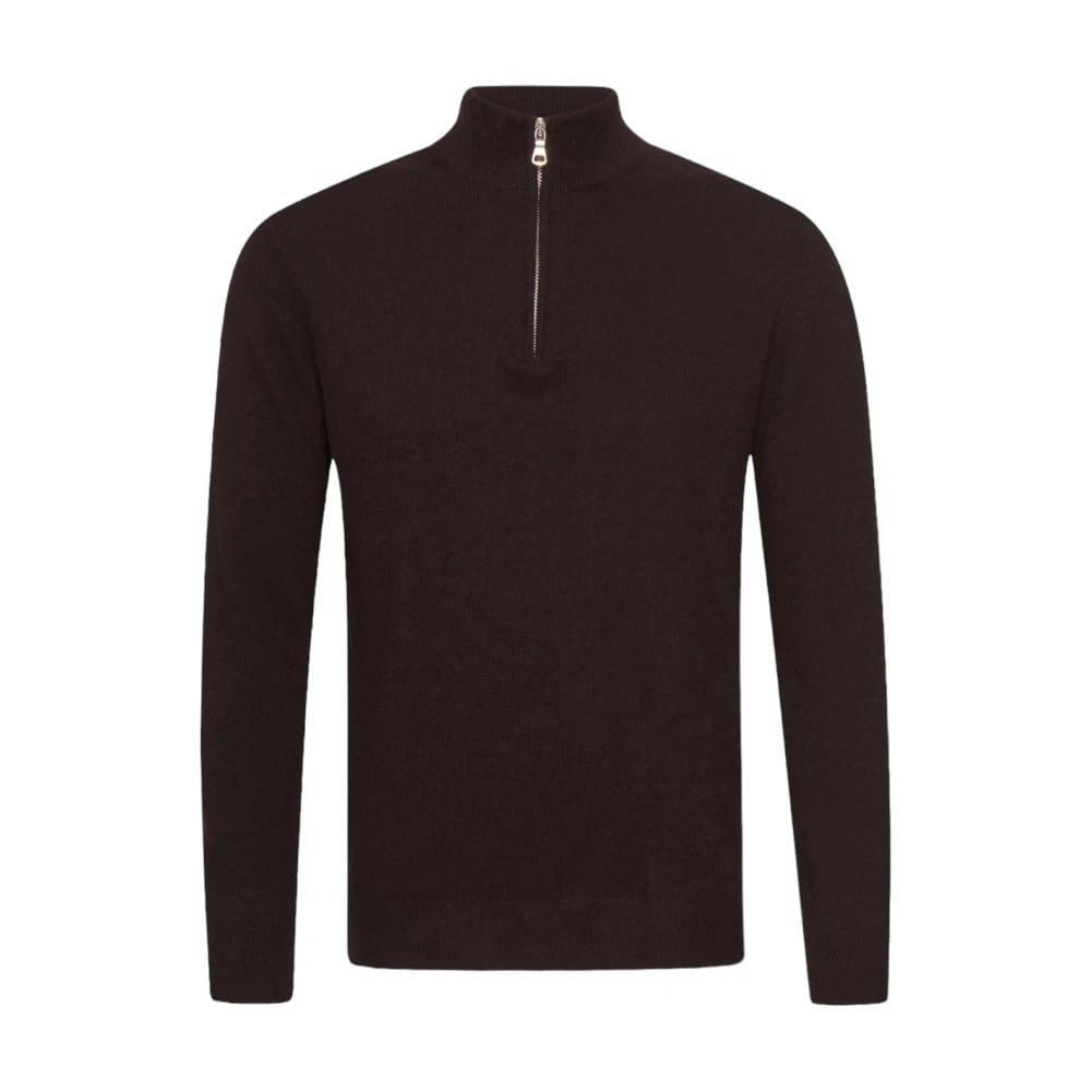 Oscar Jacobson, Stickade Tröjor , Herr, 2Xl, Kashmir, Brun Ull-Kashmir Half Zip Tröja