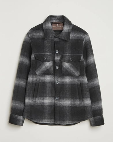 Oscar Jacobson Maverick Checked Wool Shirt Jacket Grey