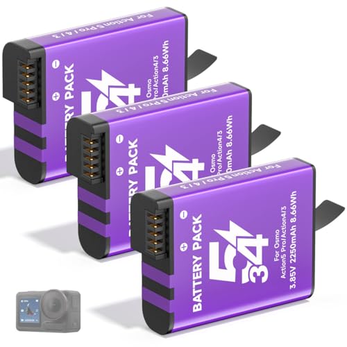 CITYORK 2250 mAh (3-pack) ersättningsbatteri för .DJI-Osmo. Action 6 Pro/Osmo 360/Osmo Action 5/Osmo Action 4/Action 3 ersättningsbatteri, uppladdningsbara hållbara sportkameratillbehör, lång