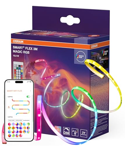 OSRAM SMART+ WIFI FLEX 3M LED-list, vit, 15W, 350lm, dimbar, dynamisk Magic RGB-effekt, individuellt val av ljusfärg, appkontrollerbar, lång livslängd, enkel installation, IP20
