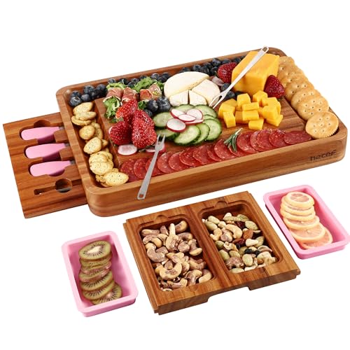 hecef generös ostbricka och charkbräda med ostknivar, dessertgafflar, 2 dolda magnetlådor samt två rosa silikonskålar. Komplett charcuterie board som inflyttnings-, jubileums eller födelsedagspresent