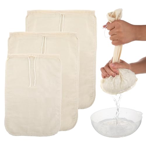 COMNICO Ostpåsar, 3-pack 30,48 cm x 25,48 cm nylon återanvändbar fin mesh ostduk sil mutter te öl juice filter duk för kallt brygd kaffe yoghurt mandel soja havre mjölk