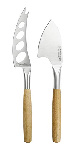 Stanley Rogers ostknivset, högkvalitativ ostskärare perfekt för mjuk ost och hård ost, slitsad kniv med blad av rostfritt stål, hållbar ostyxa (färg: silver/brun), kvantitet: 1 x uppsättning av 2