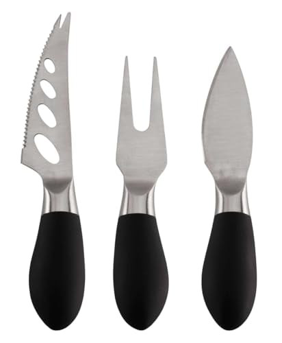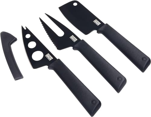 KUHN RIKON 26682 Colori 3-delar (mjuk ostkniv, ostgaffel och miniyxa) ostknivset, plast, svart, 27 x 20 x 2,5 cm, 3 enheter