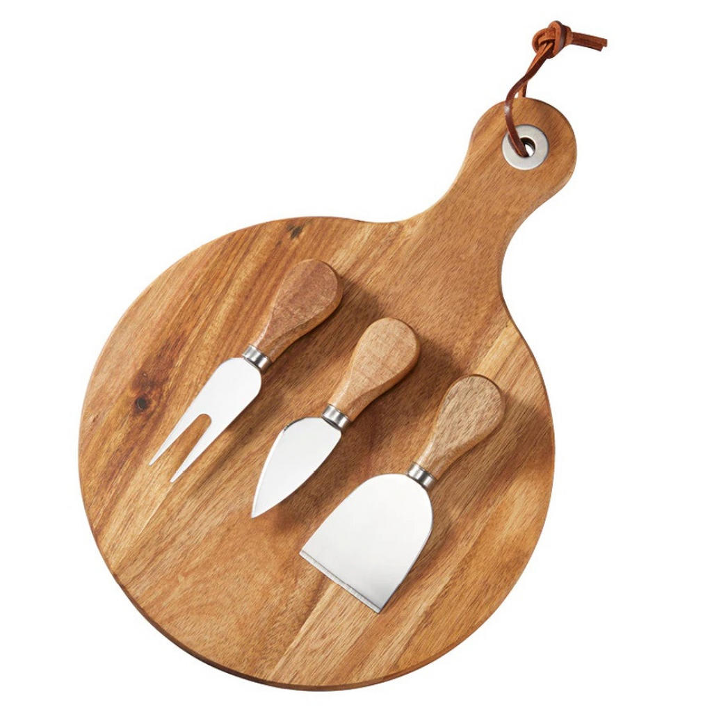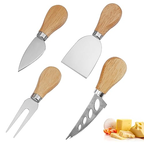 JLIAN MIOR Utsökt 4-delat ostknivset komplett samling ostknivar i rostfritt stål (Acacia-trähandtag) redo att ges bort (set med 4 delar present B)