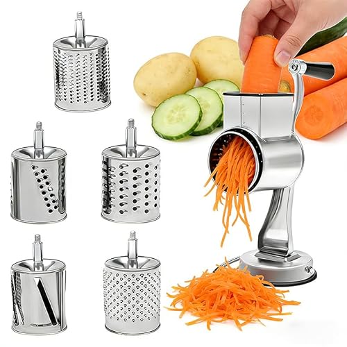 Kök roterande rivjärn, rostfritt stål trumrivjärn nötkvarn, trumrivjärn snabbare ostrivare morotsrivjärn grönsaksskivare med 5 trumblad, för frukt och grönsaker
