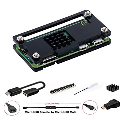 GeeekPi för Zero 2 W fodral, 7-i-1 grundläggande startsats med akryl Raspberry Pi Zero, 20-stifts GPIO-huvud, OTG-kabel, omkopplarkabel, HDMI-adapter, kylfläns