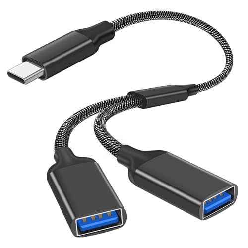 AXFEE USB C till dubbel USB adapter, typ C splitter Y-sladd OTG-kabel, USB-C-omvandlare för Galaxy S8 S9, Google Pixel och fler typ C-enheter (svart)