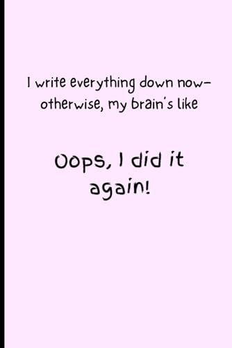 I write everything down now—otherwise, my brain’s like, 'Oops, I did it again!': Funny Gift Notebook Journal with Quotes for Friends and Family