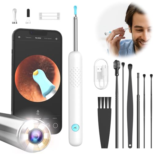 Öronvaxborttagare Otoskop - 10 Miljoner Pixlar Flexibel Öronrengöringskamera, Öronrengörare med UVC-LED, Öronkamera med Pincetter & Vätskehjälp, 3-delat Rengöringsset för Vuxna/Barn