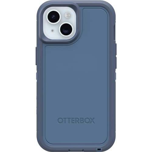 OtterBox iPhone 15, iPhone 14 och iPhone 13 Defender Series Case – babyblå jeans (blå), skärmlös, robust och hållbar, med portskydd, inkluderar hölsterklämma ställ
