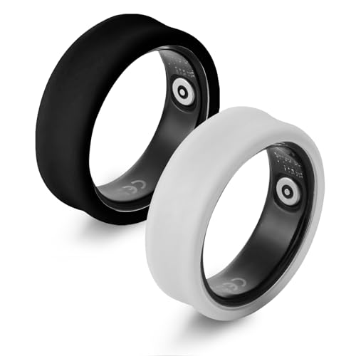 Ainiv 2-Pack Silikonringskydd Kompatibelt med Oura Ring Gen 4 eller Oura Ring Gen 3, Reptåligt Elastiskt Silikonringskydd, Män Kvinnor Tränar Gym(Svart+Vit-M)