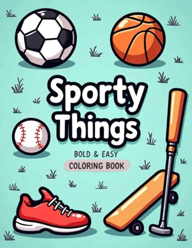 Sporty Things: Coloring Book for Adults and Kids with Big, Simple and Bold Designs for Relaxation Featuring Surf, Fitness, Golf, Outdoor and More