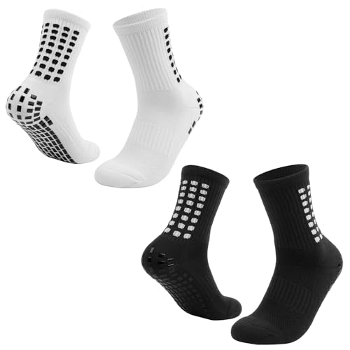 MEMOFYND 2 stycken greppvänliga fotbollsstrumpor, träningsstrumpor för män och kvinnor, ankelstrumpor, andas och halkfria, lämpliga för Outdoor-fitness-sporter (vit, svart), Svart vit, one size