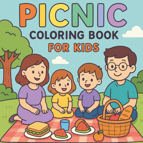 Picnic Coloring Book For Kids: 32+ Fun Coloring Pages of Outdoor Picnic Scenes, Food, Animals & Summer Fun | 8.5 x 8.5 Inch Activity Book for Boys and Girls Ages 3–7