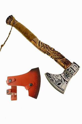 Viking Axe High Carbon Steel Sharp Blade Hand Smidd Hunting Camping Axe, Ashwood Handle, Viking Bearded Outdoor Axe, Hatchet Axe, Tomahawk gåva, trädelad yxa, jul Birthday Gift Axe med Sheath