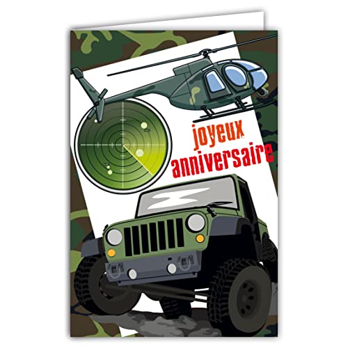 Afie 67-1252 Grattis på födelsedagen kort med kuvert för pojkar herr som älskar militäruniversum armé försvar ordning rättvisa fred outfits kamouflage Mål Helikopter 4 x 4 terrängfordon