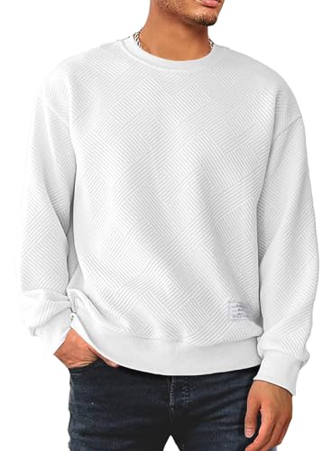 Dokotoo Men Men's Long Sleeve Sweatshirt Casual Fall Winter Soft Crewneck Geometric Texture Adult Soild Color Pullover Lightweight Sweatshirts Workout Shirt Fahion Clothes Outfits White Large