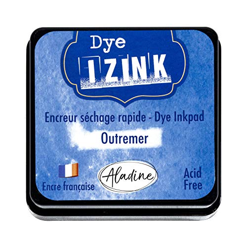 Aladine - Izink Dye Blue Outremer - snabbtorkande bläck för stämplar och schabloner - scrapbooking och kreativ korttillverkning - franskt bläck - storlek M - 5 x 5 cm - blå färg utanför