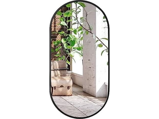 Navaris Oval Spegel Med Ram - Dekorativ Väggspegel 75 x 38 x 3 cm - Badrumsspegel, Hall, WC - Rundade Hörn Upptill - Stor Svart Spegel