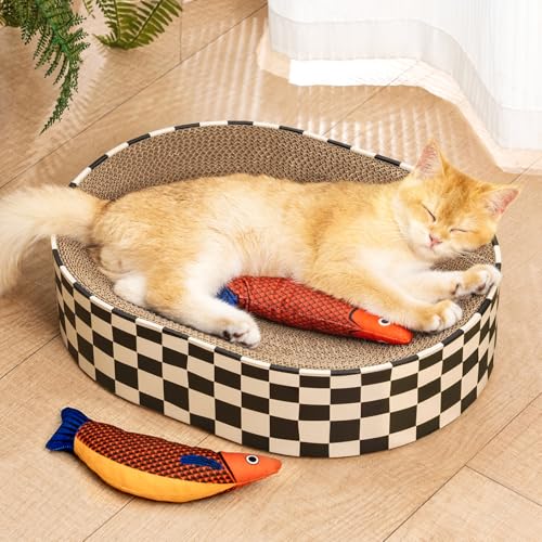 Conlun Kattklösbräda, oval kattklösbädd för kattunge, repdyna, korrugerad kartong, lounge, skål, bäddsoffa, födelsedag, kattunge klösare och kattunge leksak fisk