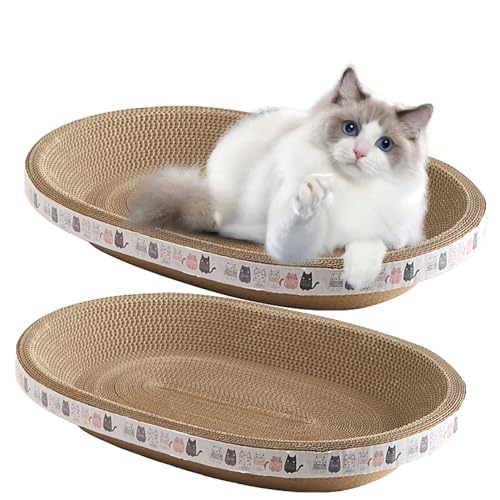 Conlun Klösbräda för katter, 2-i-1 oval klösbräda för katter, klösbräda, korrugerad loungesäng för inomhus, kattunge, slipklo, möbler för soffa och mattor och soffor, stor