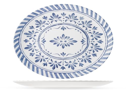 H&H, Azulejo ovala tallrikar i melamin, 6 delar, 100% dekorerad, 35 x 26 cm, lämplig för diskmaskin