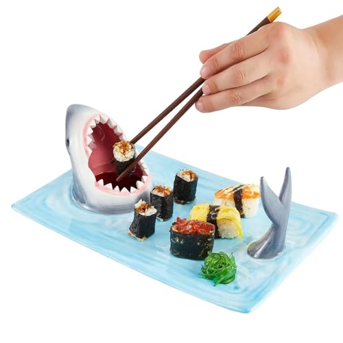 Shark Sushi Plate,Shark Attack Ceramic Sushi Plate,Hand-Painted Food Serving Tray Food Safe Materials,Microwave/Oven/Freezer/Dishwasher Safe