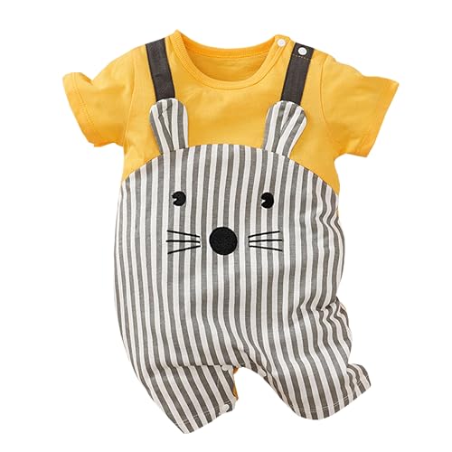 LIKPOJA Nyfödd babykläder set unisex baby onesie outfit en del sommar kortärmad overall djur sparkdräkt för baby pojkar och flickor gåvor, Mus A, 9-12 månader