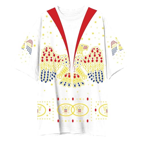 Elvis Presley unisex-vuxen officiell merch ikonisk overall kostym överdimensionerad T-shirt, vit, Large, Vitt, L