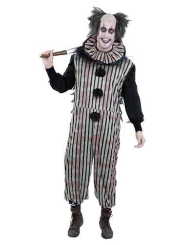 Smiffys Dark vintage clownkostym med overall och hals volang, halloween vuxen maskeraddräkt, halloween utklädningsdräkter