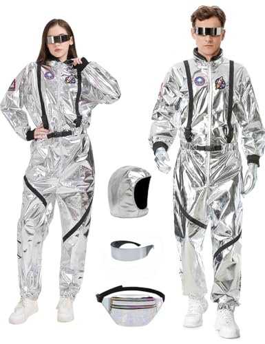 Dzorim Vuxen astronaut overall kostym för män kvinnor silver rymdman cosplay rymduniform kostym outfit för halloween karneval