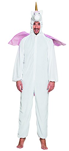Boland – vuxen kostym enhörning, overall med huva av plysch, dragkedja fram, fantasi, enhörning, karneval, temafest