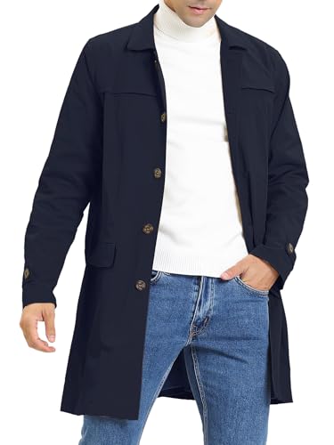 Lars Amadeus Men's Lightweight Trench Coat Single Breasted Slim Fit Jacket Overcoat Large Navy Blue