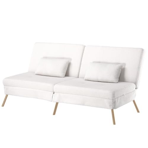 COMHOMA Soffa bäddsoffa med sovfunktion, överdrag futon hopfällbar soffa, bäddsoffa, hörnsoffa, gästsäng, 3-sitsig soffa, med justerbart ryggstöd av Vit Teddytyg