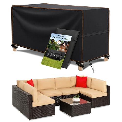 MUPAS Överdrag trädgårdsmöbler, vattentät, vindtät, tung last, 420D oxfordtyg, förbättrad presenning, trädgårdsmöbler för utomhusbruk, trädgårdsbord, stolar och möbeluppsättningar 350 x 260 x 90 cm