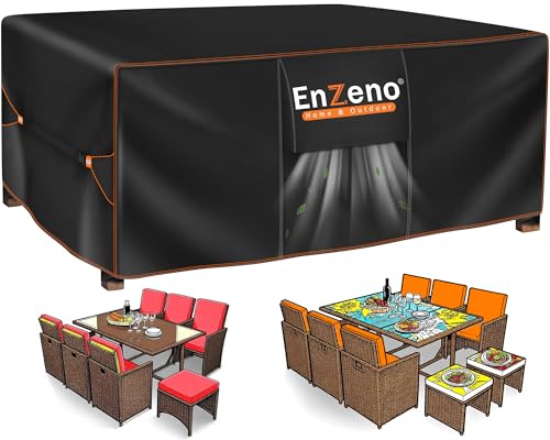 Enzeno Överdrag trädgårdsmöbler, vattentätt, 300 x 150 x 90 cm, 420D Oxford loungemöbler, skydd, presenning, trädgårdsmöbler vintersäker, skyddande trädgårdsmöbler för bord och stolar, regnskydd