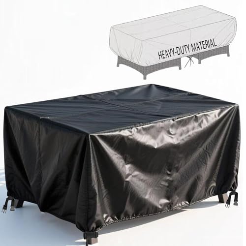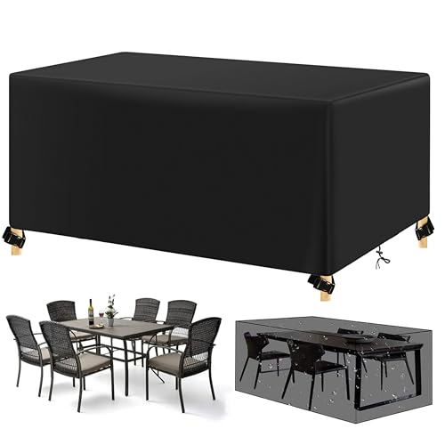 KDXAOBEI Set med trädgårdsmöbler 220 x 100 x 75 cm utomhus trädgårdsmöbler överdrag uppgraderad Oxford 600D trädgårdsbord och stolar, rektangulära överdrag för uteplats möbler, rotting möbelöverdrag