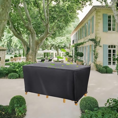 LAMUNI Överdrag för Trädgårdsmöbler, 420D Oxfordtyg Utomhus Bordsskydd, 250x180x100cm Trädgårdsbordsskydd Möbelöverdrag Utemöbler, Vattentätt Överdrag för Bord och Stolar, Vindtät, Dammtätt