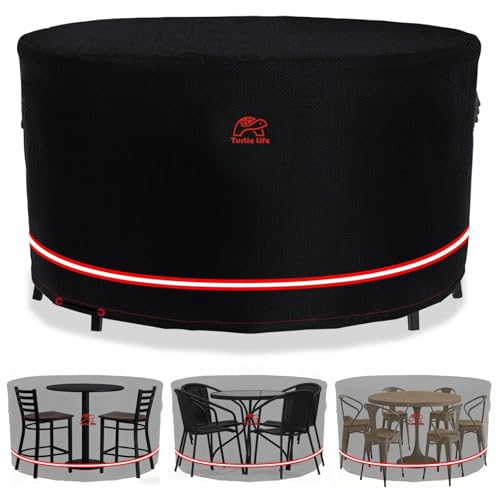 Turtle Life Runda bord och stolar, hållbart, vattentåligt, skyddande överdrag för utomhus- och inomhusmöbler med uppgraderat ventilationsgaller, svart, diameter 250 x 95 cm
