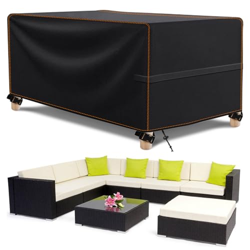 Överdrag för trädgårdsmöbler vattentäta rektangulära utomhusmöbelöverdrag rotting möbelöverdrag vattentäta slitstarka 420D Oxford vindtäta och anti-UV, för soffor och stolar 250 x 190 x 90 cm svart