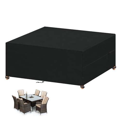 LAMUNI Överdrag för Trädgårdsmöbler, 420D Oxfordtyg Utomhus Bordsskydd, 300x300x100cm Trädgårdsbordsskydd Möbelöverdrag Utemöbler, Vattentätt Överdrag för Bord och Stolar, Vindtät, Dammtätt